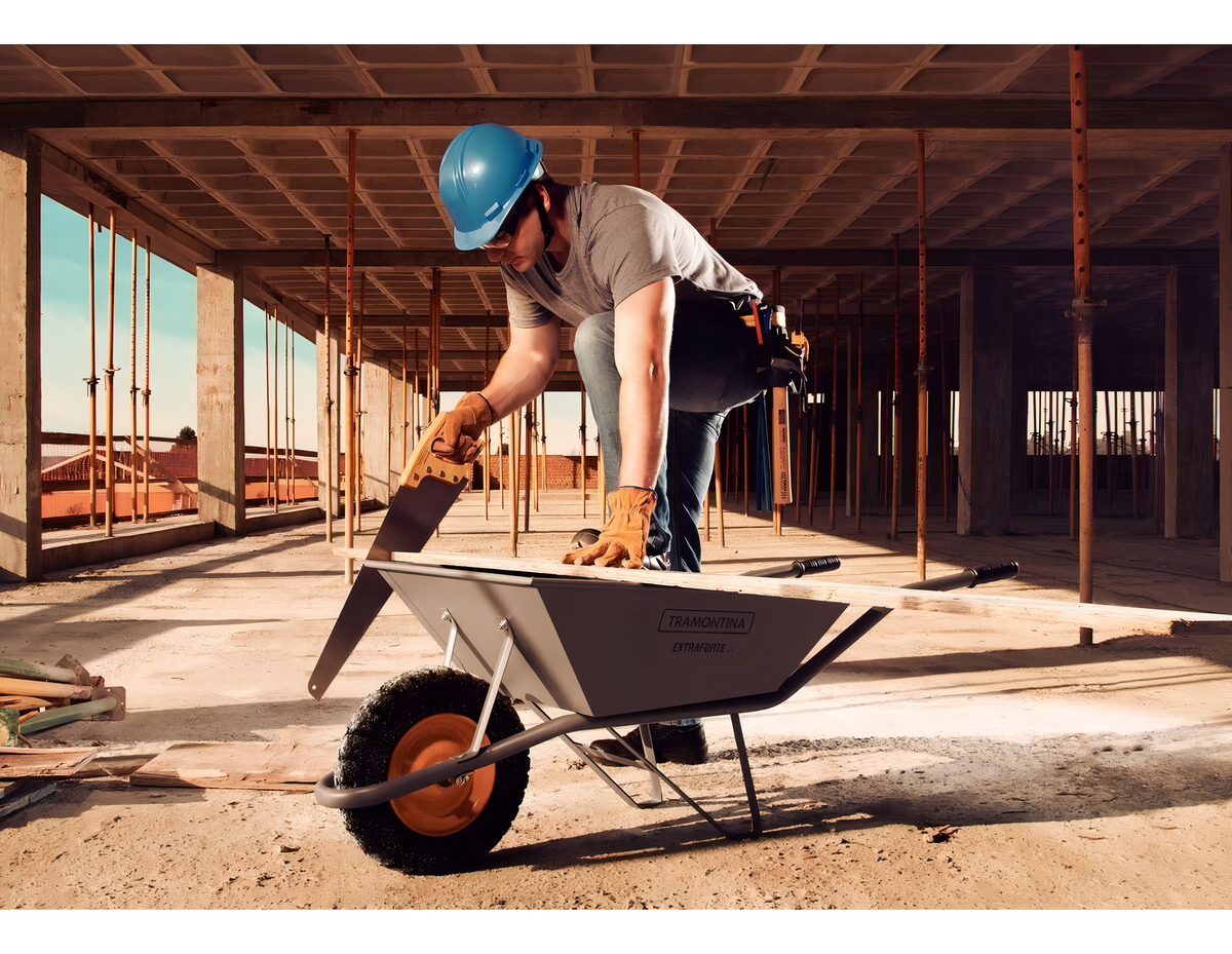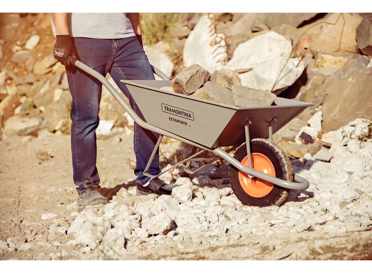 Tierra, mezcla y caliza: no importa lo que precise cargar, la carretilla Extraforte de Tramontina le garantiza alta resistencia, además de una excelente terminación. Producto fabricado de acuerdo a la norma brasileña ABNT NBR 16269.____________________________