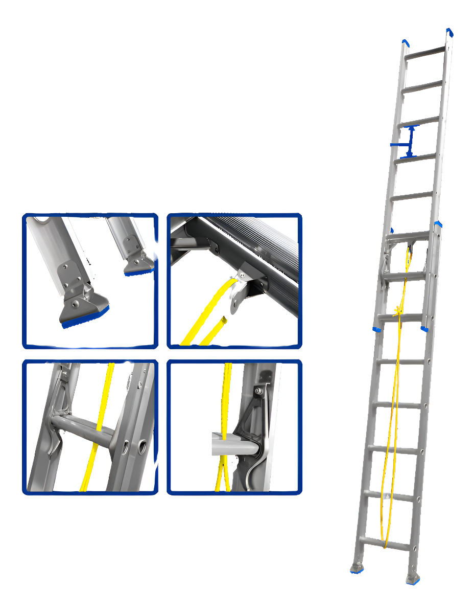 ESCALERA EXTENSIBLE 2 X 8 ESC 2 TRAMOS ALUMINIO-Material: aluminio-Número de peldaños: 2*8-Altura de extensión: 3960mm-Elevación de peldaños: 305mm-Tamaño abierto: 435x135x3960mm-Tamaño cerrado: 435x135x2420mm-Peso aprox.: 7.8kg-Carga máx: 150kg(330lbs)