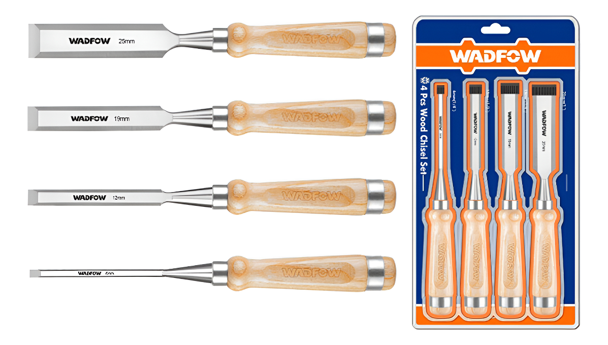 >> Juego de cinceles para madera de 4 piezas-Ancho:6mm(1/4»>>) 12mm(1/2»>>) 19mm(3/4»>>) 25mm(1»>>)-Longitud 140mm-Mango de maderaEmbalado con tarjeta deslizante>>