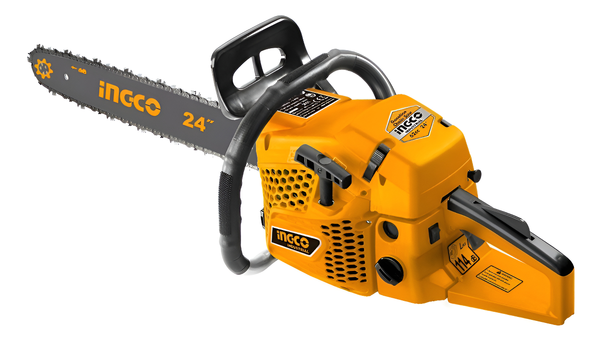 MOTOSIERRA 24»-Desplazamiento: 62cc-Potencia nominal: 2,4 Kw-Velocidad de ralentí del motor: 3100 +/- 300 rpm-Max. diámetro de corte: 605 mm (24