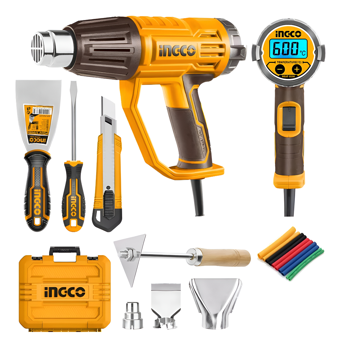 PISTOLA DE CALOR 2000W EN SET C VALIJA Y ACCESORIOS LCD-Voltaje: 220V-240V50/60Hz-Potencia de entrada: 2000W-Temperatura: 50/50-600/50-600°C-Flujo de aire: 450/300/450 L/min-Temperatura ajustable con pantalla LCD para un control preciso-Incluye:*1 boquilla reductora*1 boquilla reflectora*1 boquilla plana*1 Rascador*1 Cuchilla (HKNS11805)*1 paleta de masilla (PUT08040)*1 destornillador (HSDSSL5100)*1 Paquete de tubo termoretráctilEmbalado en maletín