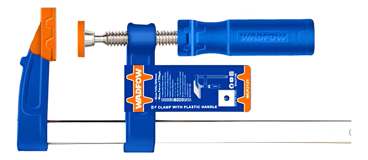PRENSA F 50X 200MM WADFOW-Tamaño de la abrazadera: 50*200 mm-Regla niquelada-Barra roscada chapada en Zine-Manija de plastico Embalado por tarjeta de papel
