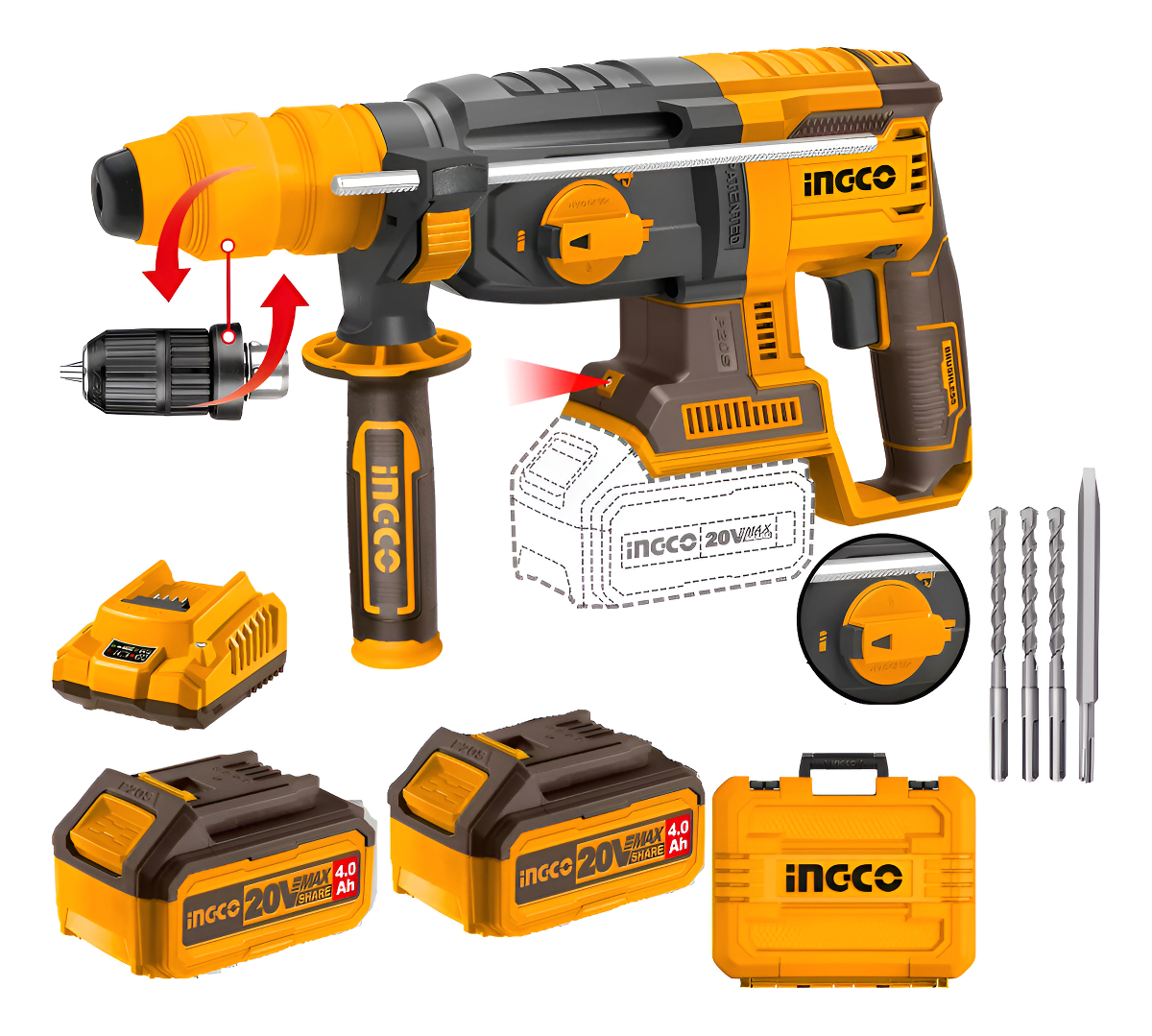 Rotomartillo 20v P20s 26mm 4 Funciones C Adaptador Ingco