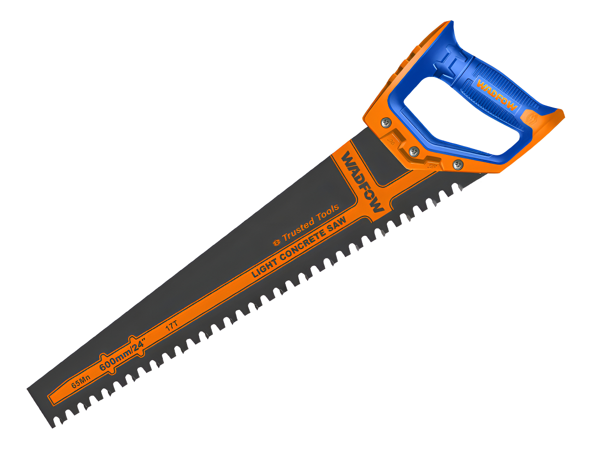SERRUCHO 24» P CONCRETO Y MADERA-Tamaño: 24/600mm-Material: Acero al carbono 65Mn-Número de dientes: 14T (diente de acero de tungsteno)-Para cortar hormigón celular/ladrillo de cenizas volantes tratadas en autoclave/placa de yeso/bloque de hielo-Dientes con tratamiento térmico-Tratamiento superficial de pintura electroforética-Mango suave de dos colores