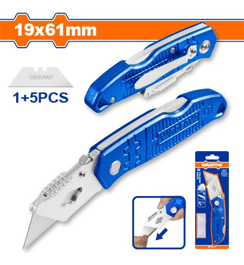 TRINCHETA PLEGABLE WADFOW 6 REPUESTOS-Cuchillo plegable-Tamaño de la hoja: 61 mm * 19 mm-Con cuchillas de 1 + 5 piezas-Longitud: 165 mm-Peso neto: 60gEnvasado en blister doble